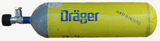 In den Druckluftflaschen ist Luft mit 300 bar gespeichert. Die Flaschen bestehen aus Stahl, Leichtmetall oder kohlenstofffaserverstärktem Kunststoff (CFK). Der Luftvorrat kann aus dem Flaschenvolumen mal dem Fülldruck berechnet werden. Bei den verwendeten 300er Flaschen mit einem Volumen von 6 l ergibt dies eine Luftmenge von 1800 l Luft. Um diese Zahl besser vergleichen zu können, bedenke man, dass man bei ungefähr 4 Atemzügen 1 Liter Luft verbraucht. Mittlerweile können wir unsere Flaschen selber füllen, benötigt wird hier ein spezieller Kompressor. Dieser unterliegt einer ständigen Kontrolle und verfügt über spezielle Filter um die Luft trocken und frei von Öl und Schmutz aufzubereiten.