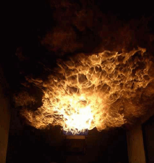 Im Falle eines, trotz Kühlung der Rauchgase, durchzündenden Flash-Overs muss der Strahlrohrführer sein Hohlstrahlrohr blitzartig auf die Flash-Over Stellung drehen. So schützt der breite Wasserkegel über den Feuerwehrmännern vor der Hitzewelle der explosionsartig sich ausbreitenden Rauchgase. Gleichzeitig zieht der Truppführer den -Mann rückwärts aus dem Gefahrenbereich.