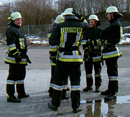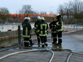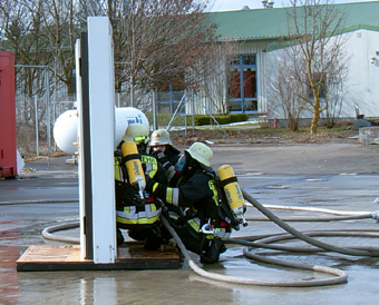 Geprobt wurde mit aufgezogenem Atemschutzgerät, aber ohne den Lungenautomaten angesteckt zu haben.