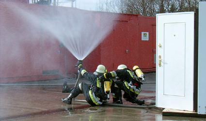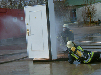 An dieser Station wurde gezeigt, wie man die Türe eines Brandobjekts relativ sicher aufmachen kann.