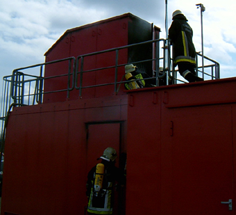 Diese Inhalte werden in dem Brandsimulationscontainer des Freistaats Bayern sehr intensiv und realitätsnah trainiert.