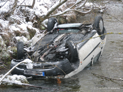 Einsatz 13 | 22.3.07 - VU in Staubers, PKW kopfüber in Bach
