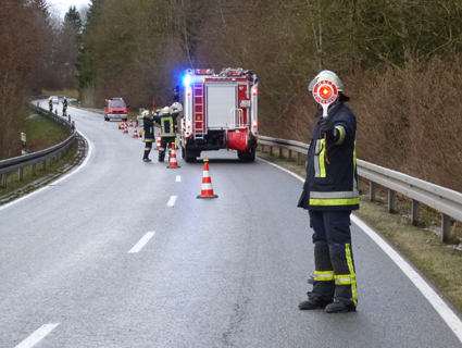 Die Feuerwehr Altusried wurde innerhalb kurzer Zeit zu einem 2. Einsatz zeitgleich gerufen. Wegen Sturm war ein Baum auf der Staatsstraße Richtung Kimratshofen.