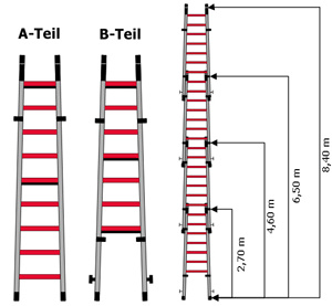 Eine tragbare Leiter aus Leichtmetall. Sie wird aus maximal vier Teilen zusammengesteckt und lässt sich sowohl als Anstellleiter als auch als Bockleiter verwenden. Sie dient der Feuerwehr als Angriffs- und Rettungsgerät. Man kann mit ihr Steighöhen bis zum 2. Obergeschoss (8 m über Geländeoberfläche) erreichen. Das Gewicht beträgt bei der Aluleiter 10 kg je Element, es werden ca. 3-4 Mann zum Aufstellen benötigt.