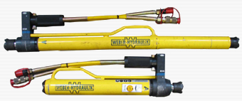 Die hydraulischen Rettungsgeräte entfalten ihre Wirkung durch einen doppelt wirksamen Hydraulikzylinder. Durch ein Ventil kann der Ölstrom durch die Hydraulikpumpe in zwei Richtungen erfolgen, so dass die Geräte sowohl Druck als auch Zug ausüben können. Ob sich Rettungszylinder, Schere oder Spreizer öffnen oder schließen, sprich in welche Richtung das Öl gepumpt wird, wird durch eine Steuerung am hinteren Griffende geregelt, welche Stellteil genannt wird. Wird das Stellteil losgelassen, so verharrt das hydraulische Rettungsgerät in der momentanen Position. Somit ist ein unbeabsichtigtes Öffnen oder Schließen nicht möglich.