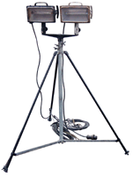 Zur Ausleuchtung z.B. einer Unfallstelle werden auf ein Dreifuß-Stativ 2 Flutlichtscheinwerfer montiert. Beide Scheinwerfer haben eine Leistung von 2000 Watt und eine Anschlussspannung von 230 V. Um das Stativ auch bei einer unebenen Fläche aufstellen zu können, sind die Stützfüße variabel weit ausfahrbar und können zu der Oberfläche angepasst werden.