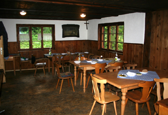 Die selbstversorger Hütte liegt unweit der Straße zur Hochgratbahn am Waldrand, die Weissach fließt nur ein paar Meter von der Haustüre vorbei. Die Hütte hat 20 Betten, die auf zwei Schlafräume im Dachgeschoss verteilt sind.