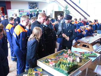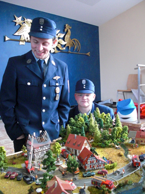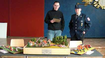 Auch das Diorama der Jugendfeuerwehr Altusried wurde ausgestellt. Die Jugendlichen aus der Gründerzeit der JF-Altusried - vor rund 10 Jahren - bauten das Modell in der Winterzeit ihrer Ausbildung. Das detailgetreue Modell stellt verschiedene Einsatzszenarien dar. |