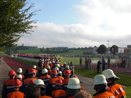 Um bei knapp 150 Mannschaften einen zügigen und reibungslosen Wettbewerb garantieren zu können bauten die Verantwortlichen der Jugendfeuerwehr Oberallgäu um Kreisjugendwart Hubert Speiser 4 Parcours auf dem Sportplatz Durach auf. 50 Schiedsrichter stehen zur Bewertung der Aufgaben bereit. Die Verpflegung wurde von der Feuerwehr Durach auf dem Schulgelände und deren Aula übernommen. |