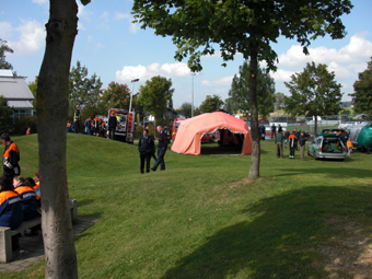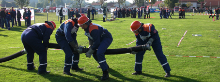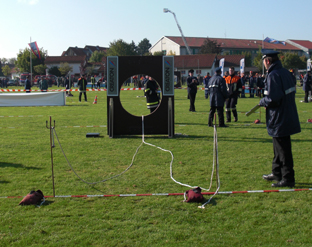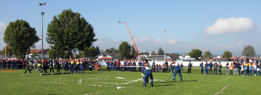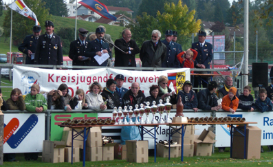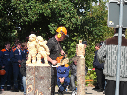 Nach dem Wettkampf konnten die Jugendfeuerwehrler neue Feuerwehrfahrzeuge und Technik, aber auch Oldtimer anschauen. Weiter wurde ein umfassendes Rahmenprogramm mit Simulationshubschrauber der Polizei, Holzschnitzarbeiten mit der Kettensäge, Bierkistenklettern, Kindereisenbahn und vieles mehr angeboten. |