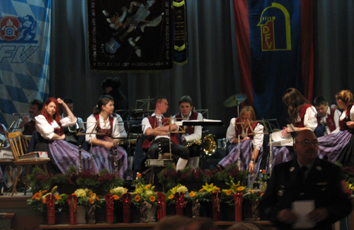 Der mit Feuerwehrfahne dekorierte „Rößle- Saal“ und die musikalische Umarmung der Harmonie Musikkapelle Altusried, betonte den Kameradschaftsabend, der zur Anerkennung für geleistete Dienste bei der Feuerwehr dient.