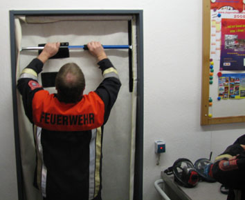 Die Einsatzkräfte der Feuerwehr gehen bei Brandeinsätzen z.B. in mehrgeschossigen Gebäuden meist über den Treppenraum vor. Hierbei besteht die Gefahr, dass durch das Öffnen der Türe in die brennende Wohnung Rauch in das Treppenhaus dringt.