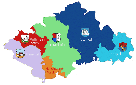 Die kreisangehörige Gemeinde Altusried besteht aus den fünf ehemals selbständigen Dörfern Altusried, Krugzell, Kimratshofen, Muthmannshofen und Frauenzell und zählt inzwischen über 10.000 Einwohner. Als sechste Gemarkung liegt noch der "Hohentanner Wald" im Altusrieder Gemeindegebiet.