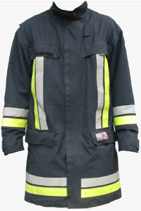 An der Jacke sind mehrere Taschen, unter anderem für Funkgerät an der Brust, Außen wie Innen angebracht. Der Kragen kann hochgeklappt und mit einem Klettverschluss verschlossen werden. Zudem verfügt sie über einen sog. Panikreißverschluss, der durch überziehen des Reißverschlusses eine rasche Öffnung des Schutzanzuges ermöglicht. Die Überjacke erbringt den erforderlichen Schutz ohne spezielle Unterbekleidung.