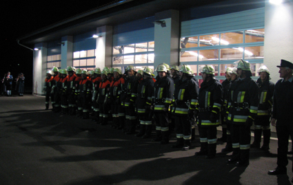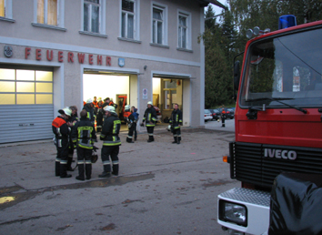 Am Freitagabend um 19.00 Uhr trafen sich alle aktive Feuerwehrmänner aus Altusried, um mit einem Umzug ins neue Feuerwehrhaus zu ziehen. Alle zogen sich ein letztes Mal im alten Haus den Schutzanzug an.