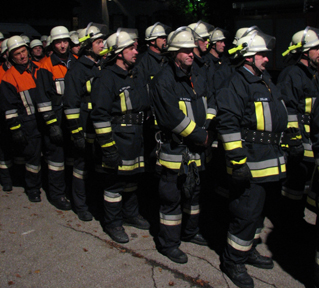 Viele Mitbürger schauten sich den Umzug an und applaudierten begeistert, als angeführt von der Musikkapelle, Fahnenabordung, Jugendfeuerwehr, Feuerwehrmänner und schließlich alle Fahrzeuge an ihnen vorbeizogen.