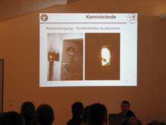 Genauer kam jetzt der Kaminbrand zu Sprache. Es brennt hier der Abbrandruß im Schlot. Dieser kann dann extrem heiß werden (1000°C - 1300°C). Gefährdet sind vor allem Abzweigungen und ungenutzte Ofenanschlüsse, da hier Zwischendecken oder eventuell davor stehende Möbel in Brand geraten können.