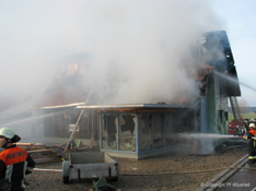 Die Feuerwehren Muthmannshofen, Frauenzell und Kimratshofen, die zu einem Zimmerbrand alarmiert wurden, mussten jedoch beim Eintreffen feststellen, dass die Flammen bereits meterhoch aus dem Gebäude schlugen. Die enorme Hitze brachte sogar Fensterscheiben eines Nachbarhauses zum Platzen. Daraufhin wurde die Alarmstufe erhöht und die Feuerwehr Altusried nachalarmiert.